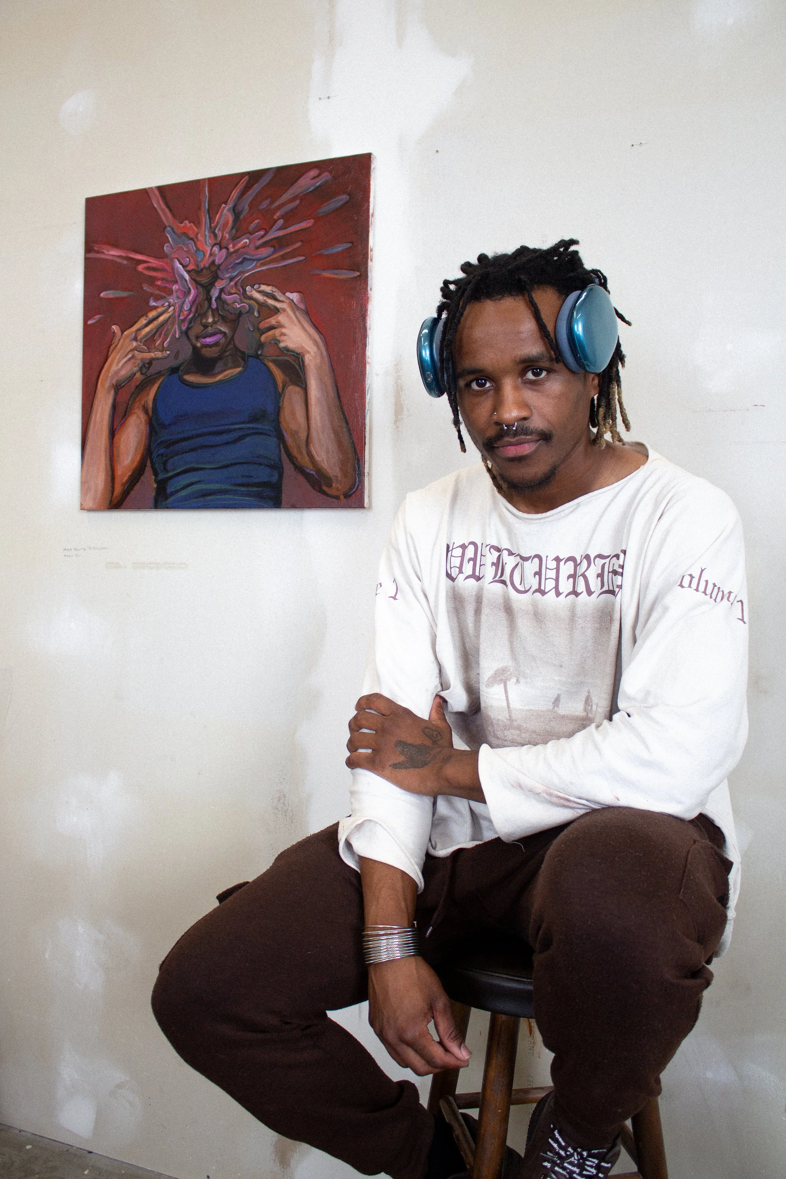 Saint Ki is a Chicago based multidisciplinary artist focused on summarizing emotional self reflections, experiences, and nostalgia through storytelling by using his self taught take on portraiture. Pulling insight from creative luminaries such as Salvador Dali, he merges elements of conceptualism seamlessly into his artistic practice, resulting in a body of work that is as visually striking as it is thematically rich. Weather inspiration is taken from his idols, media or from life itself, each work serves as a visual summary of lived experiences that circle around the main topic of his emotional state and identity. Gestured figures, abstract colorful skin tones, exaggerated expressions, movements, and intuitive colour pallets allows for dramatic messaging through conceptual surrealism. With each piece, he grows closer to fully understanding himself as his works are a visual representation of his self discovery.
